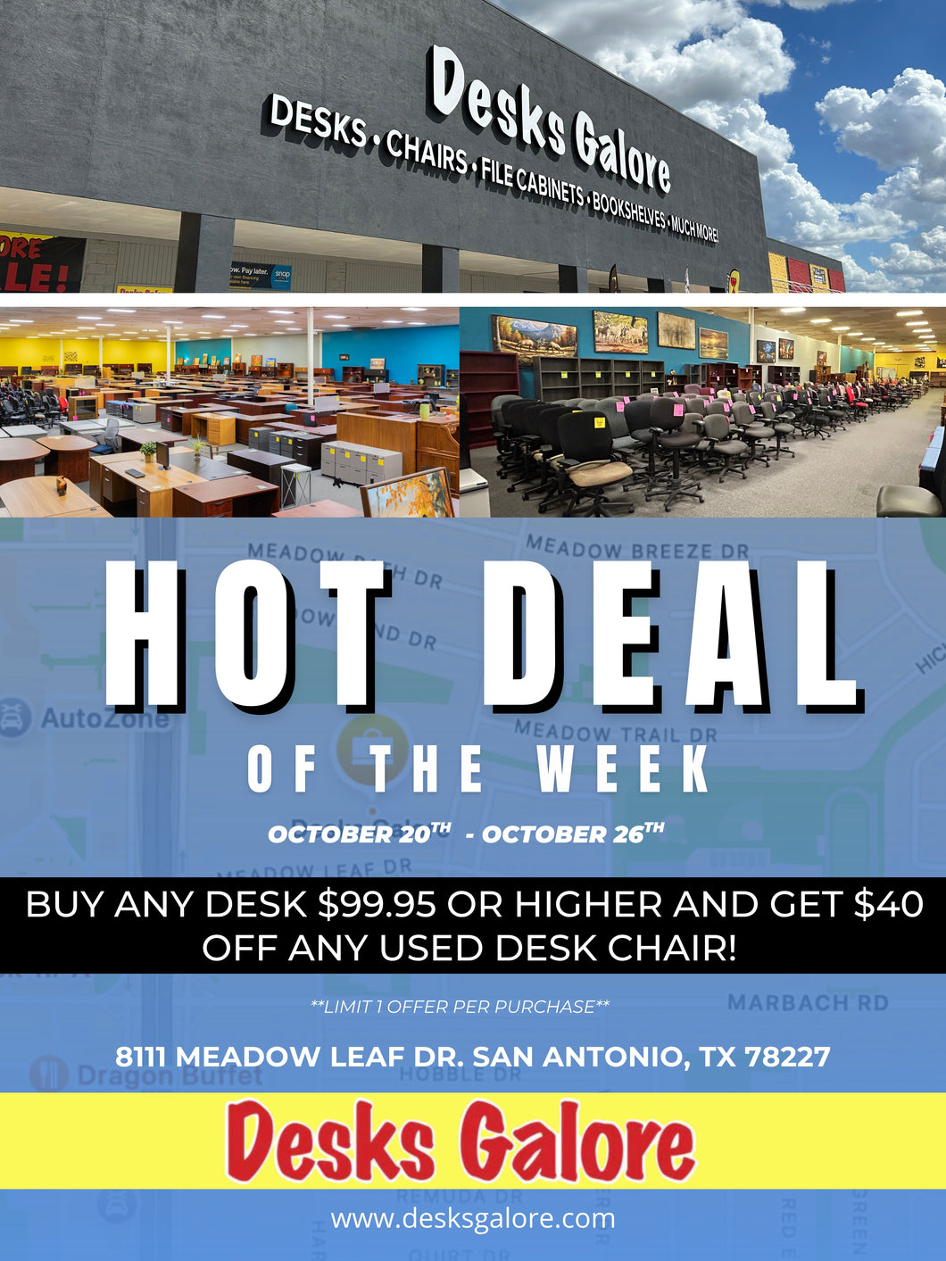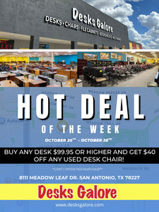 Buy any desk $99.95 or higher and get $40 off any USED desk chair! Ask associate for details.