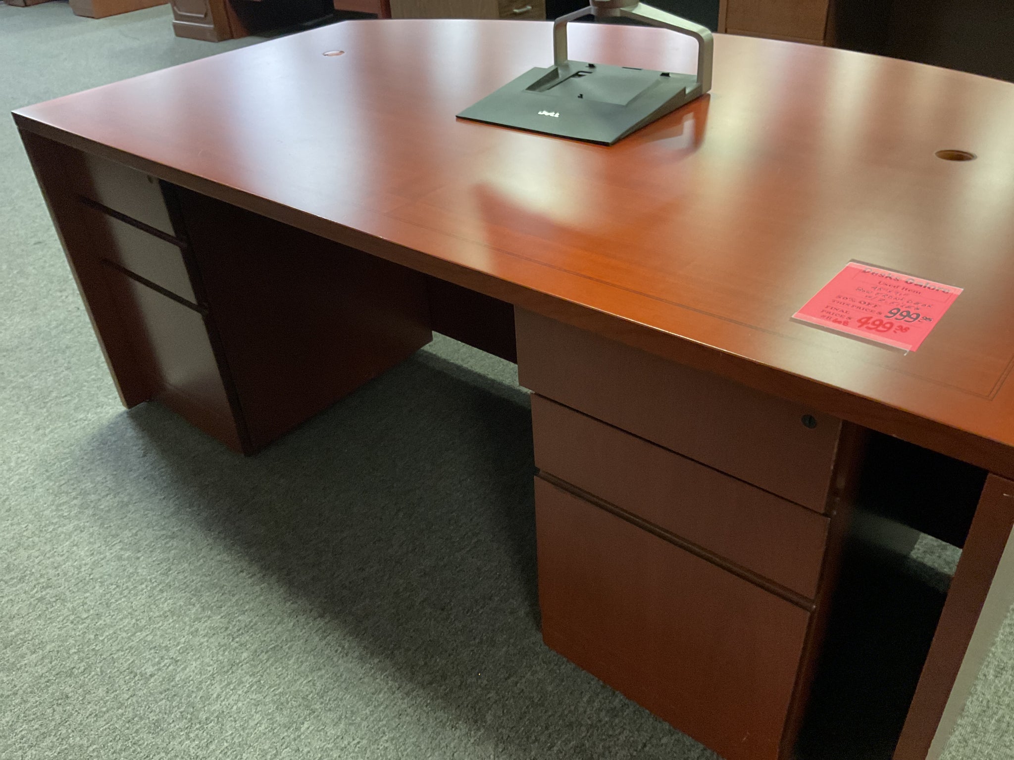 R608 45”x 71” Cherry Bow front Used Desk w/2 Files $499.98 - 1 Only