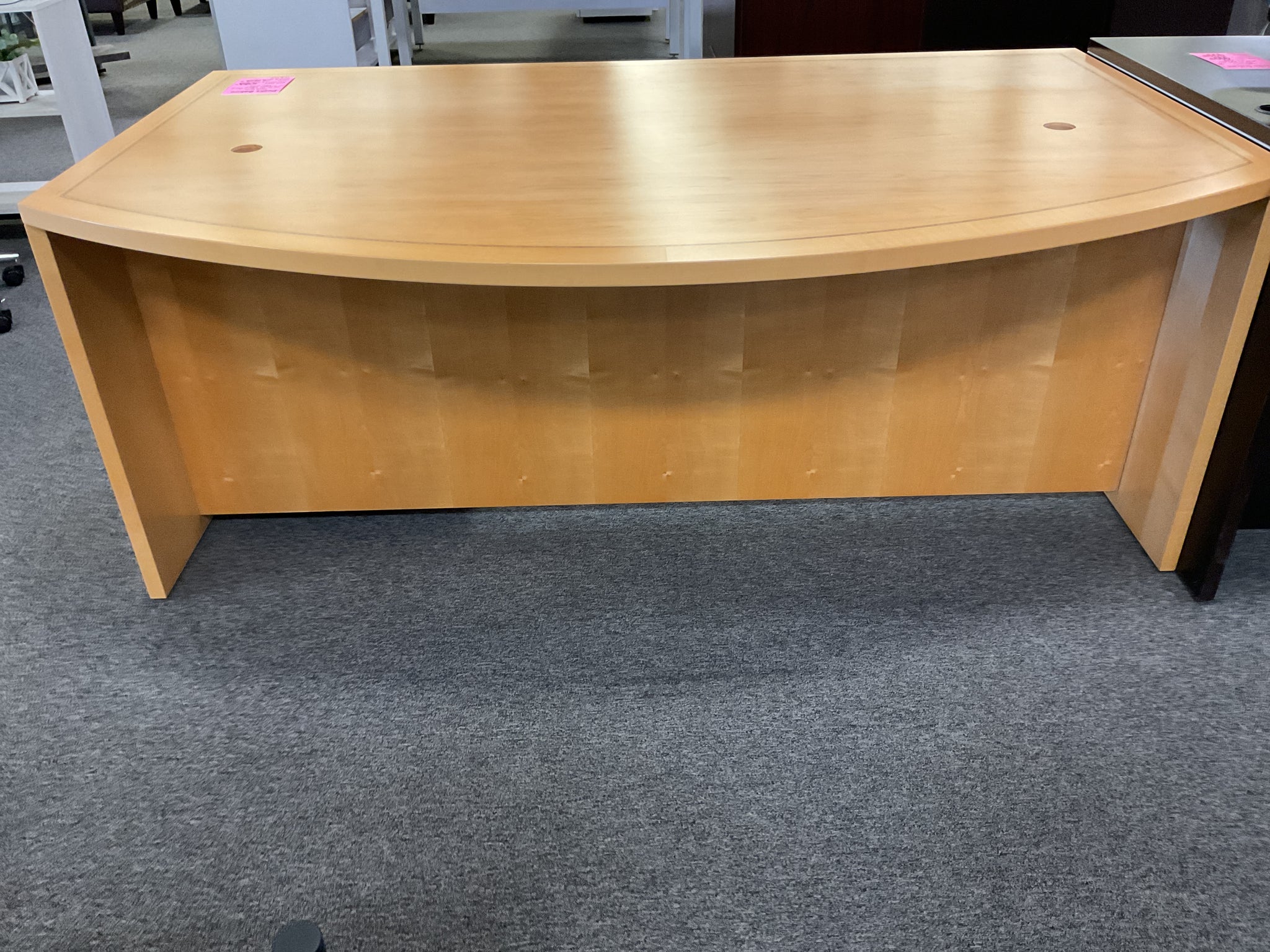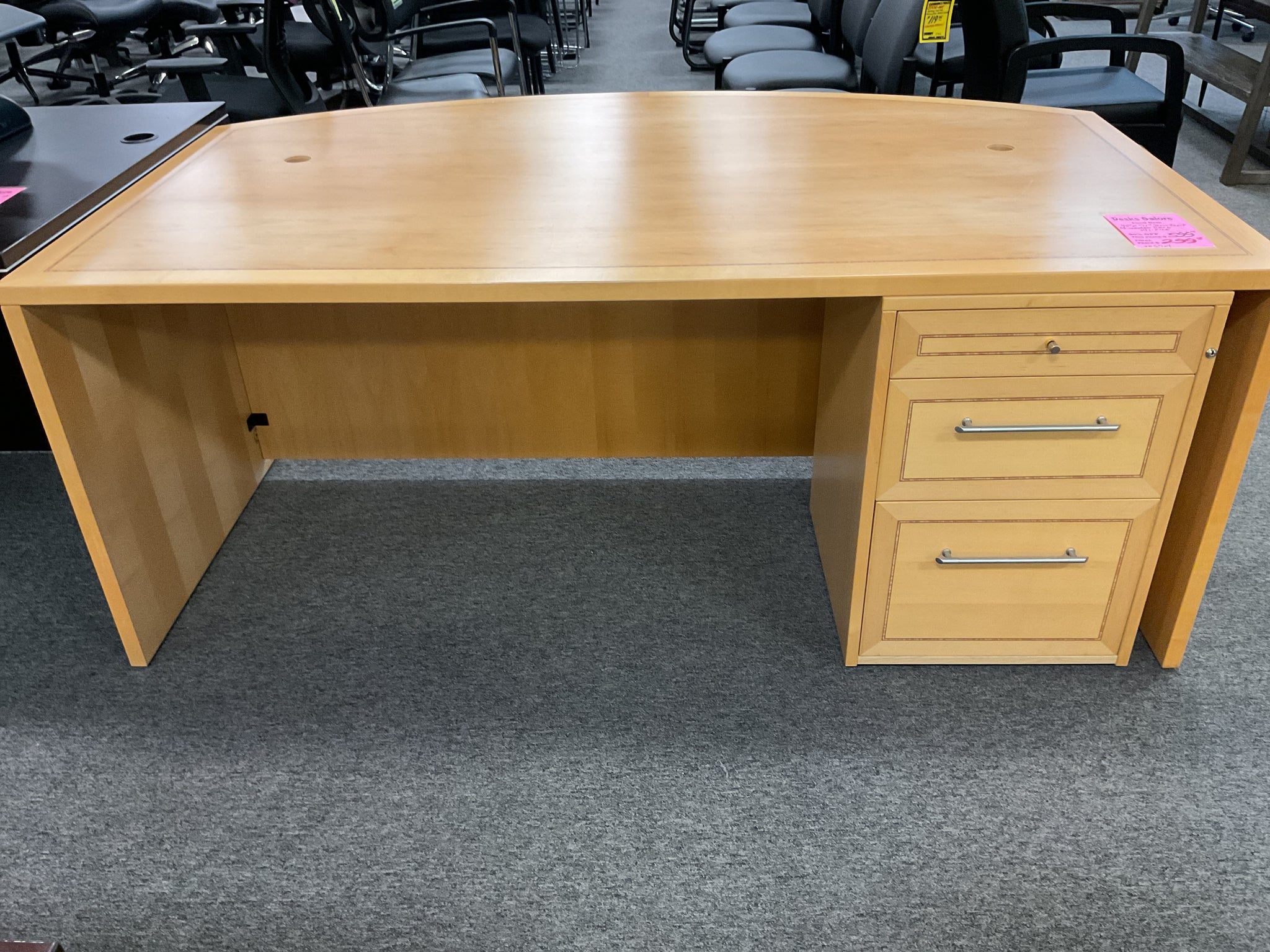 R6704 45”x 71” Pine Bow Front Used Desk w/1 File $299.98 - 1 Only