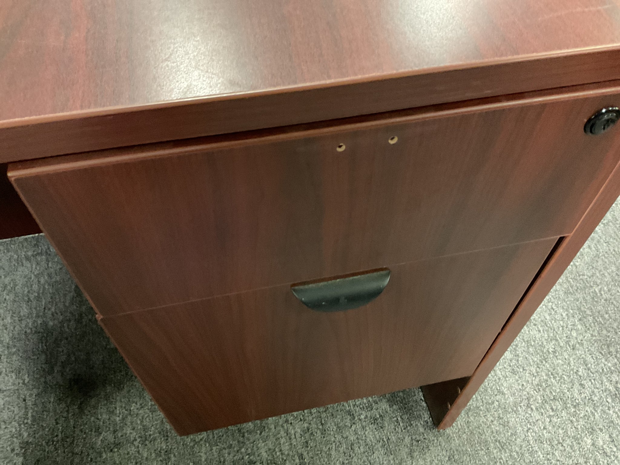 R7710 30”x 66” Mahogany L- Shaped Used Desk w/2 Files $499.98 - 1 Only