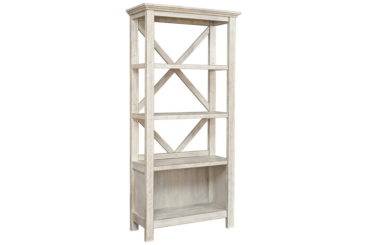 Looking for a fresh approach to modern farmhouse living? This bookcase works on so many levels. Clean-lined profile with crossbuck back never goes out of fashion. Whitewash finish is a mastery in subtle sophistication.