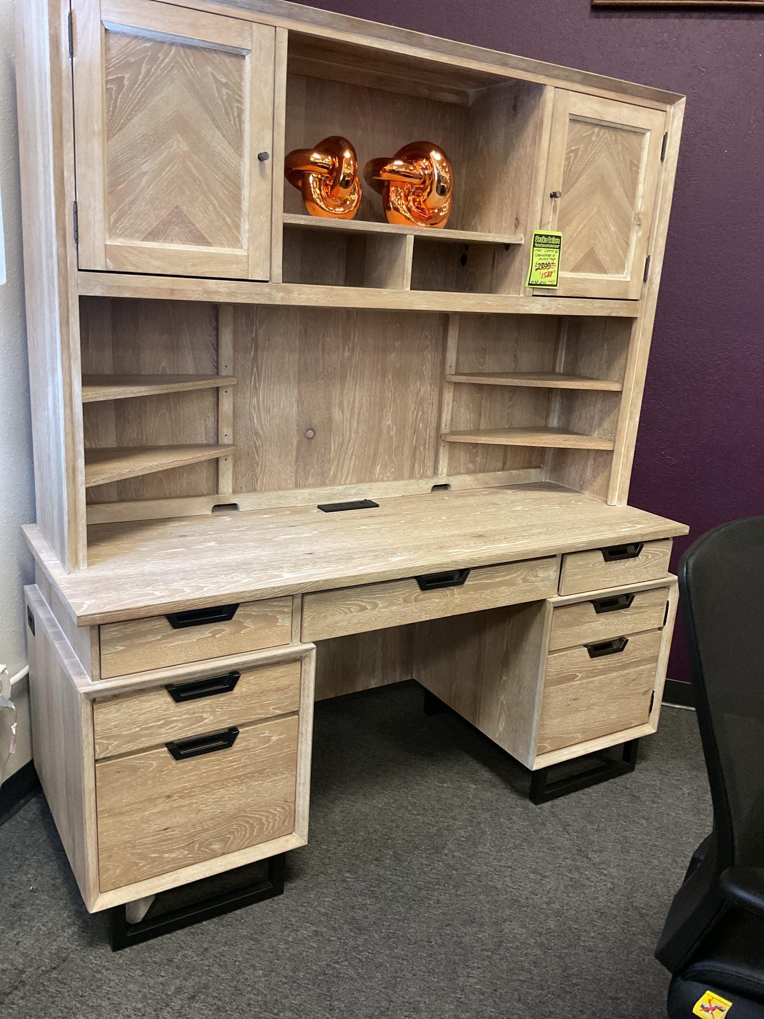 Offering a relaxed contemporary look from the complex organic finish to the contrasting metal accents and hardware. Functional features make this an easy choice for your workspaces.