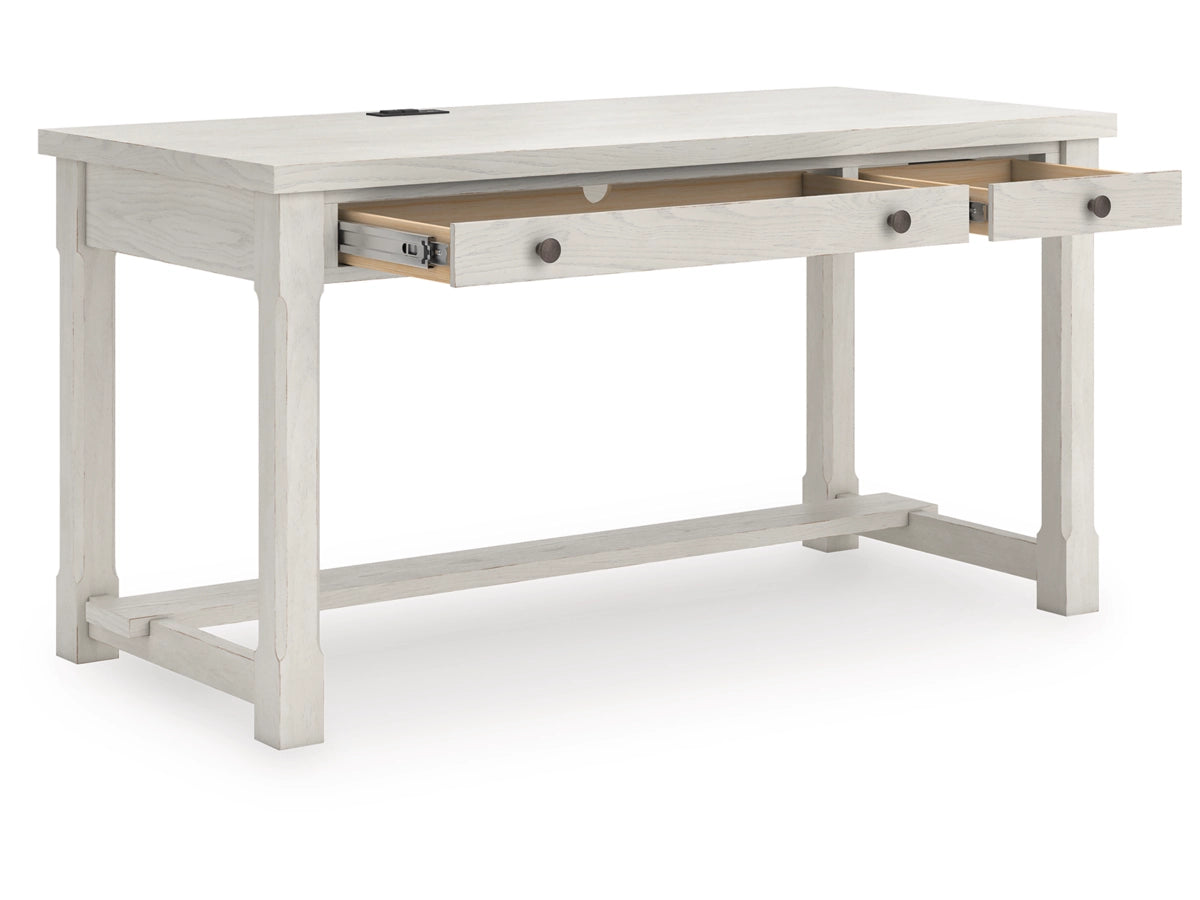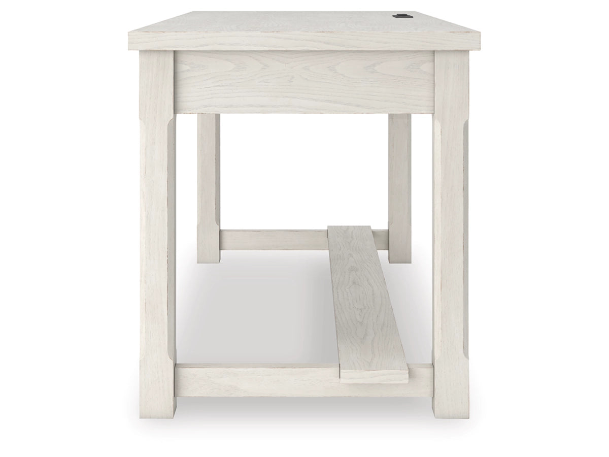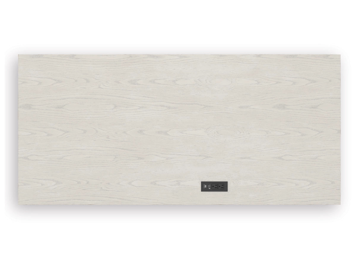 The Robbinsdale home office desk is sure to impress when it’s time to study or work from home. With its antiqued white finish and wood grain texture, modern farmhouse-style workstations have never been so fashionable. A wide keyboard drawer and convenient USB charging bring function galore to your at-home office. Use this piece as a stand-alone work area, or pair it with the matching desk return (sold separately) to expand your workspace.